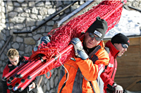 Saslong-Weltcupstrecke in Gröden begonnen. Sicherheitsnetzte müssen mit großer Präzision fixiert werden, Kamerapositionen für die Live-Übertragung bestimmt-, Kabel verlegt- und die Kompaktschneeanlage getestet werden. Rund 80 Schneekanonen der Liftgesellschaft garantieren eine reibungslose Abwicklung der Rennen.